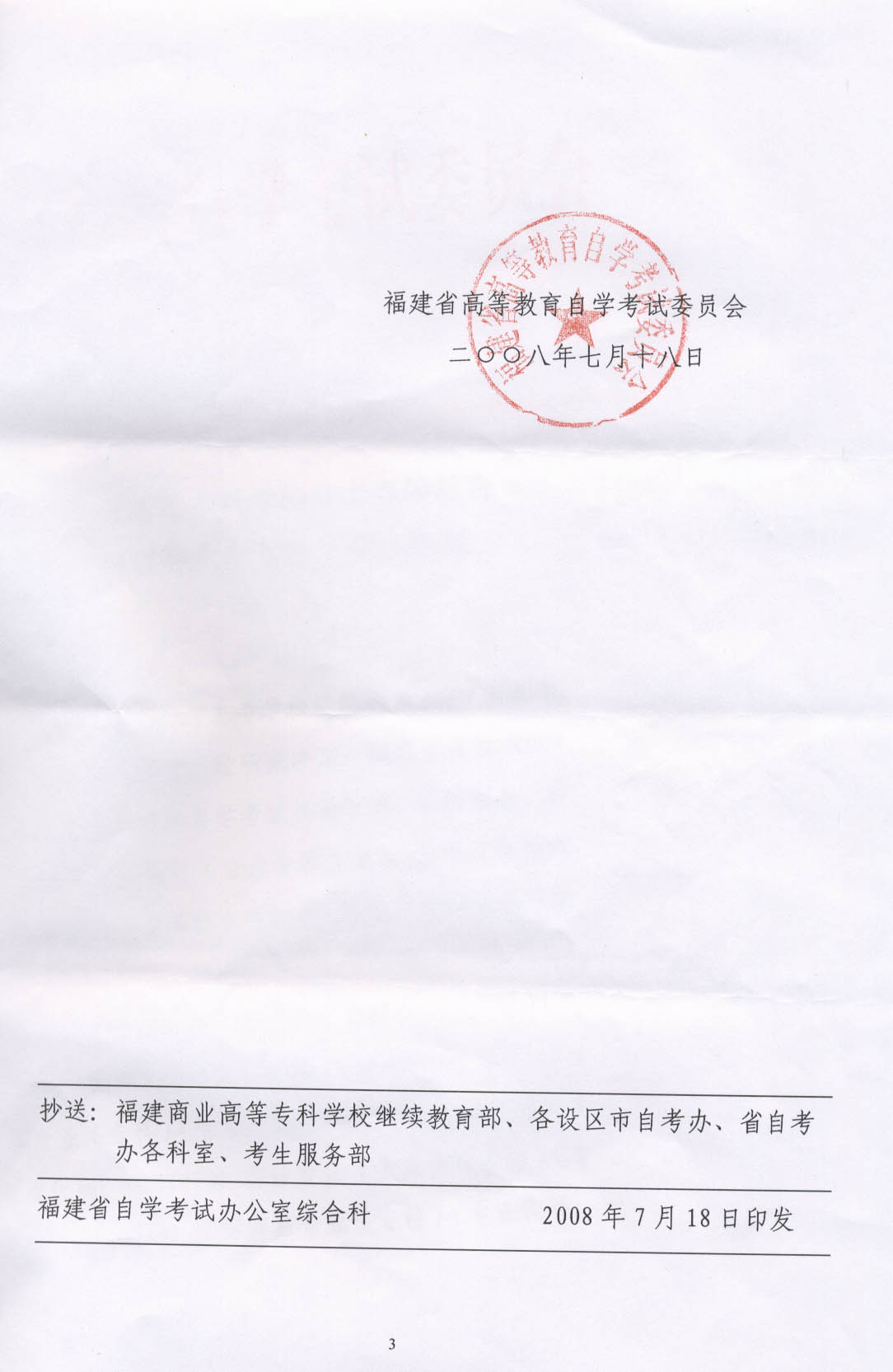 闽教自考(2008)40号关于同意我校开考自学考试会计等六个专科专业的批复