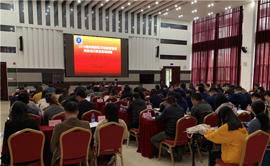 12月6日-7日,由福州高新区市场监督管理局主办,我校在线买世界杯平台承办的“2018年福州高新区市场监督管理局依法行政业务培训班”在福建中医药大学国际中医药培训中心开班。福州高新区市场监督管理局副局长李迎春,福州高新区党工委委员、管委会副调研员熊国华,副院长方方以及来自福州高新区市场监督管理局的干部职工、各企业人员共107名学员参加培训,开班仪式由李迎春主持。
